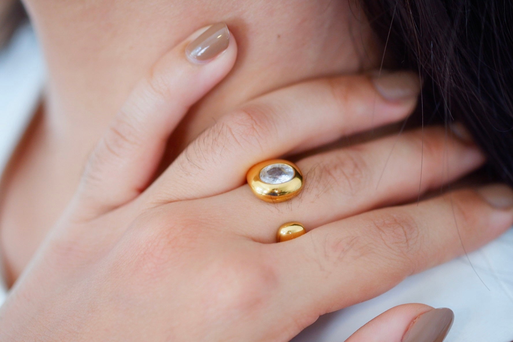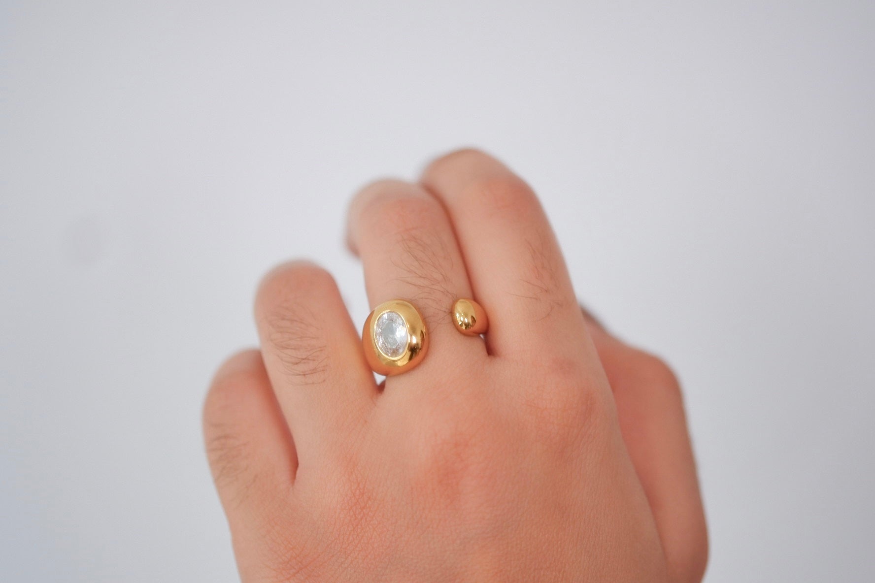 Anillo con presencia y brillante, elaborado con una zirconia que aporta un destello elegante y atemporal. Una pieza versátil, perfecta para usar sola o combinar con otros anillos.