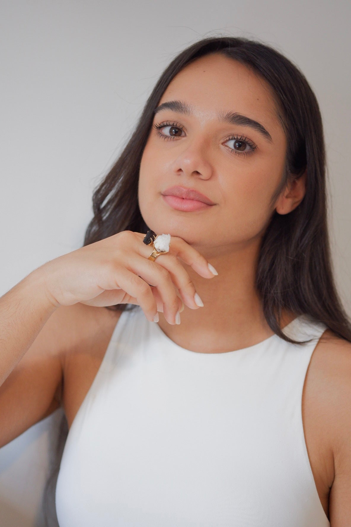 Una pieza única que combina belleza y energía. Este anillo destaca por la elegancia del cuarzo, claro y luminoso, junto a la fuerza y profundidad de la turmalina negra. El contraste entre ambas piedras crea un diseño moderno, místico y sofisticado, perfecto para quienes aman los accesorios con estilo y significado.