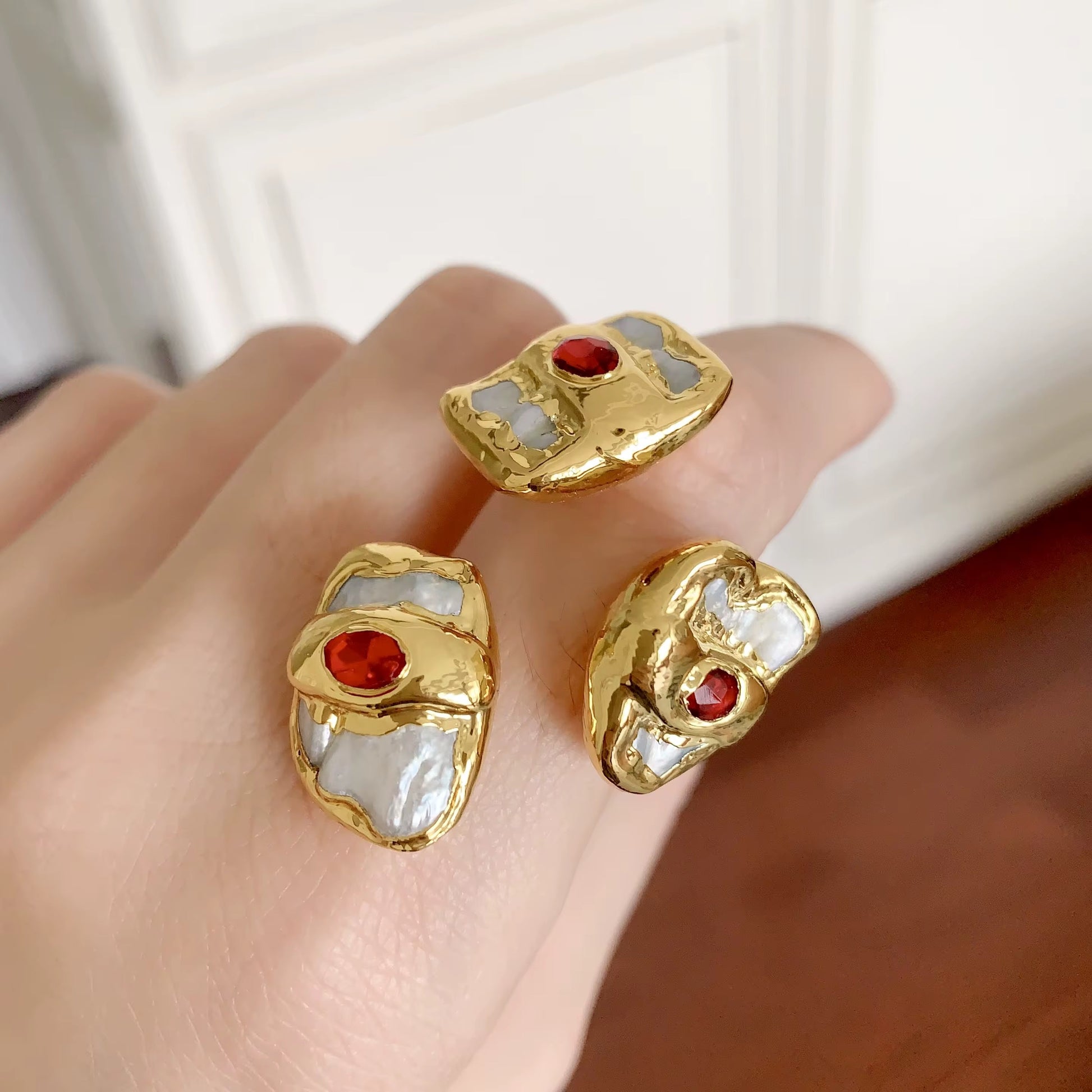 Un diseño único que combina la elegancia natural de la perla de río con la fuerza y vitalidad del coral en piedra. Su tamaño llamativo lo convierte en una pieza protagonista, ideal para quienes aman los accesorios con personalidad.