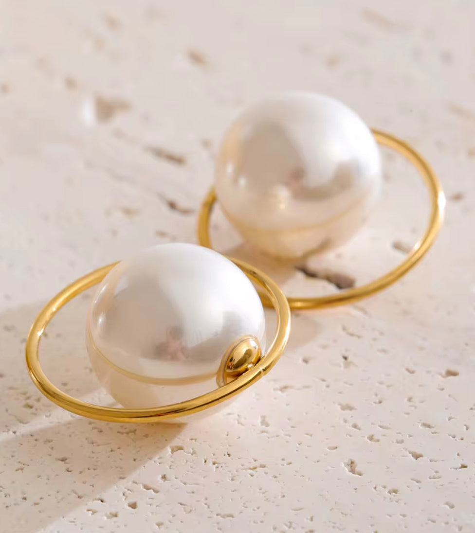 Aretes de aro modernos y delicados, decorados con una perla grande que aporta un toque clásico y sofisticado. Su diseño combina frescura y elegancia, convirtiéndolos en una pieza versátil para cualquier ocasión.