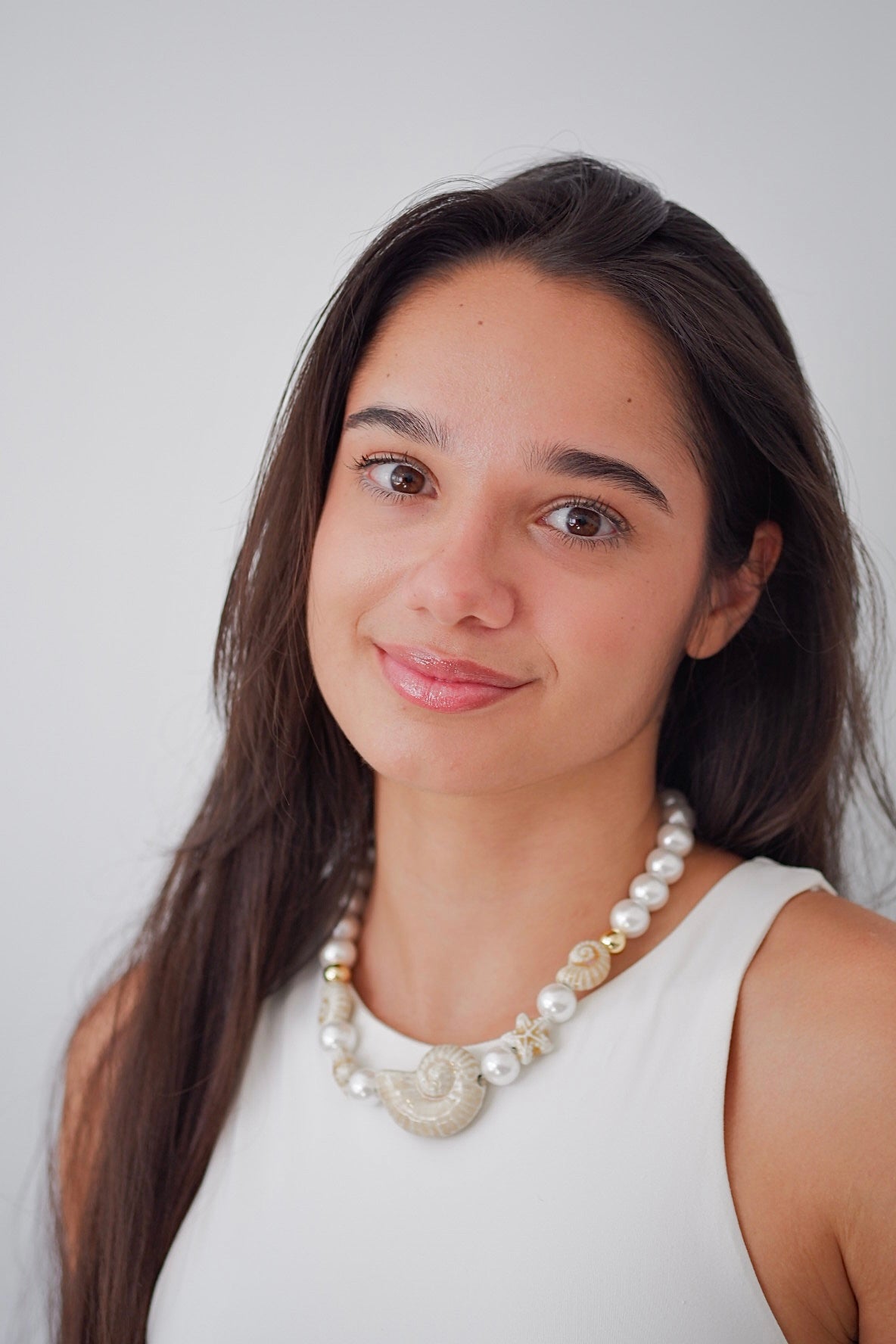 Impactante y lleno de personalidad, este collar grande combina caracoles en cerámica con el toque elegante de las perlas. Su diseño artesanal evoca frescura y un estilo veraniego sofisticado, ideal para destacar en cualquier ocasión.