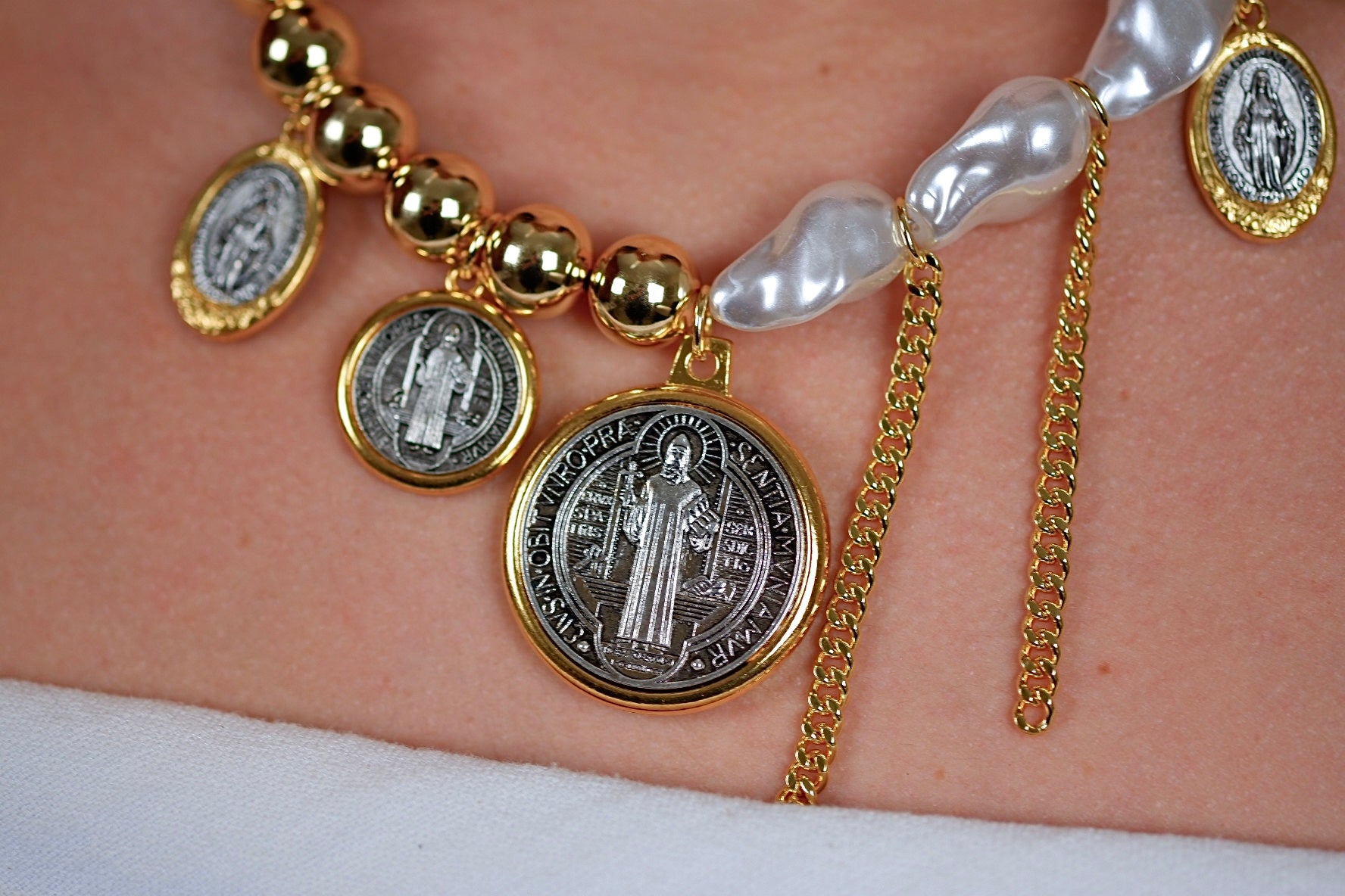 Hermoso y glamuroso collar de San Benito. Todo lo que deseas en un collar que sea todo el centro de atención.