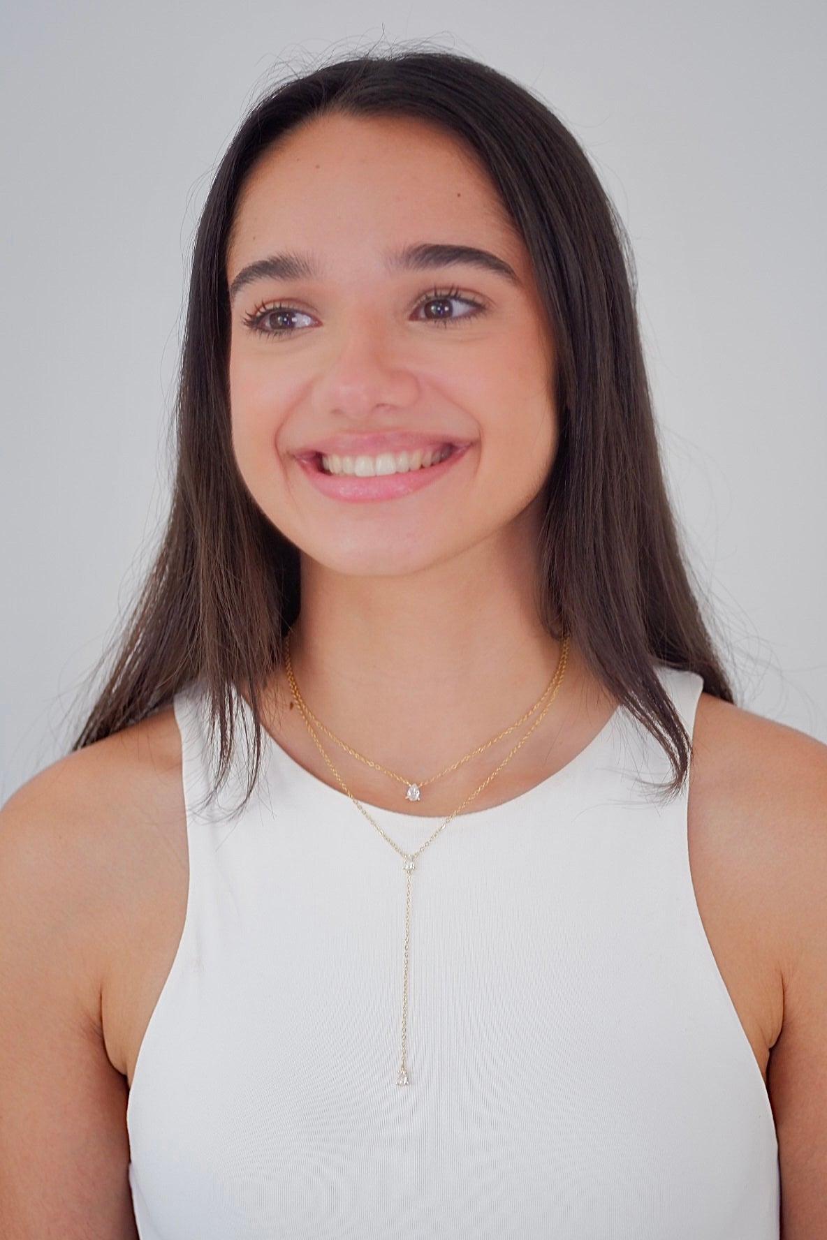 Collar doble finito con tres delicadas zirconias que añaden un brillo sutil y elegante. Un diseño minimalista, perfecto para usar solo o en combinación con otras piezas