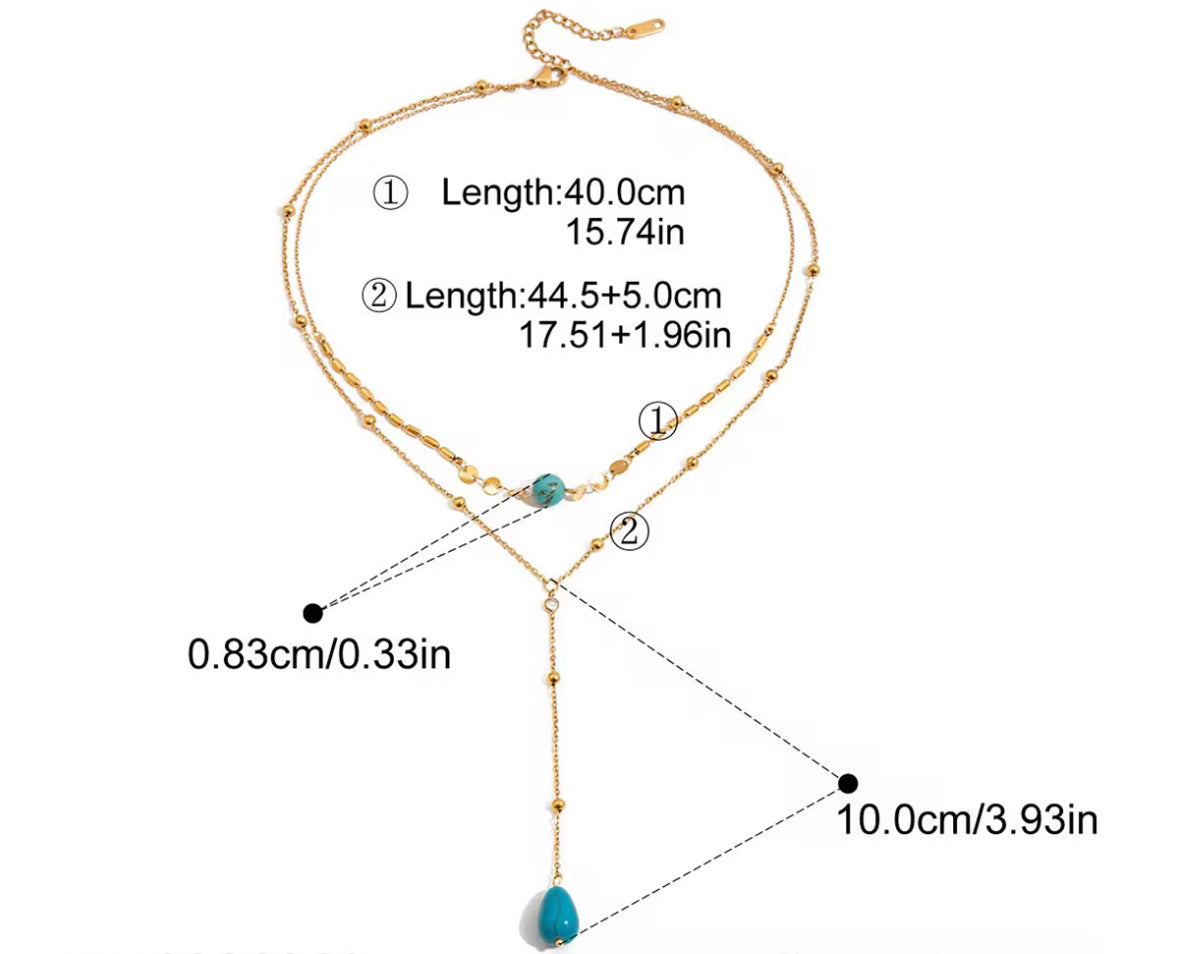 Moderno y delicado, este collar en capas combina dos cadenas finas que se complementan a la perfección. Sus detalles en piedra turquesa aportan frescura, color y un aire bohemio-chic, ideal para realzar tanto un look casual como uno más elegante. Una pieza versátil que aporta estilo sin esfuerzo.