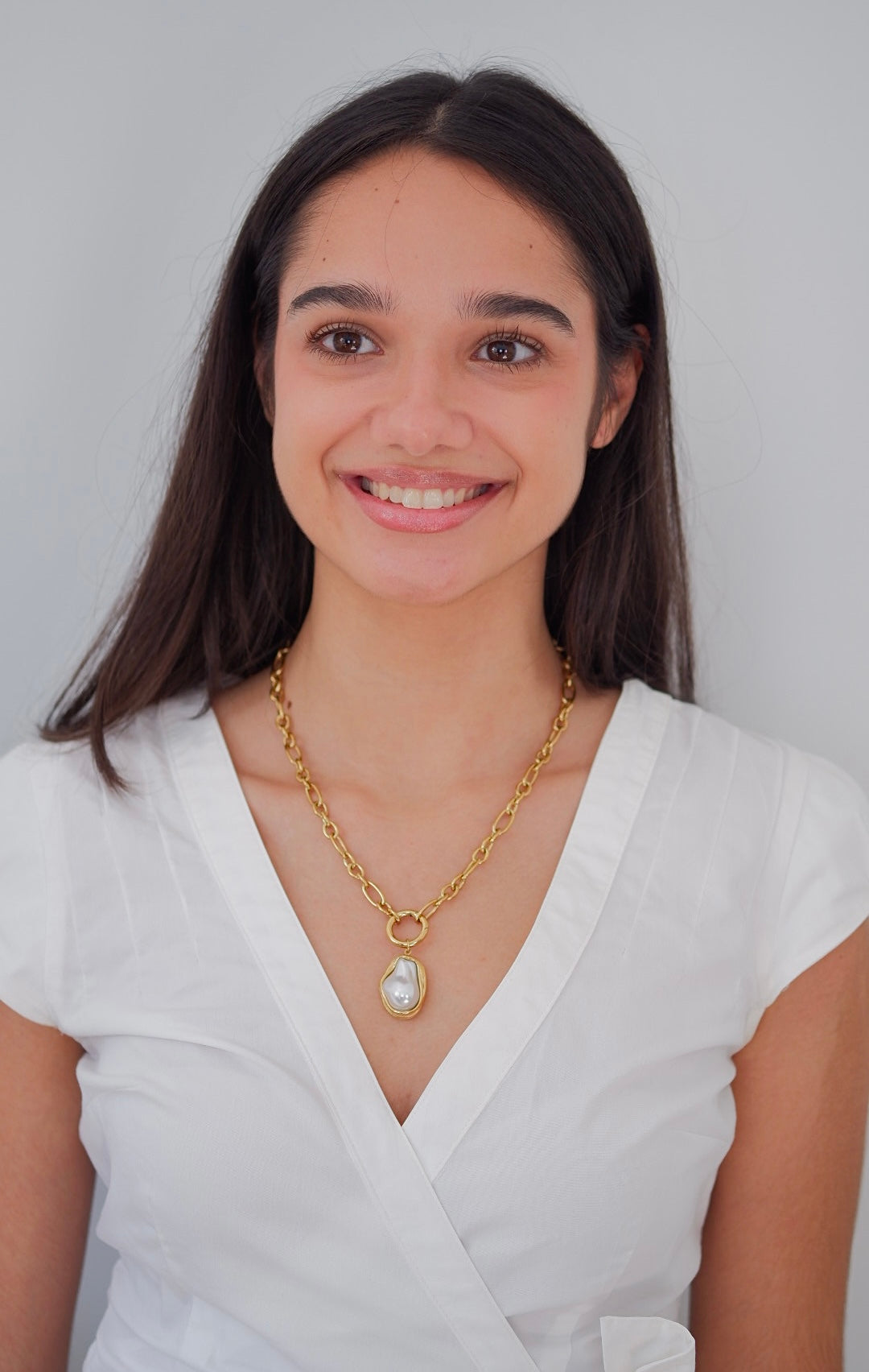 Eleva tu estilo con este delicado collar multicapa en acabado dorado brillante. Su diseño combina dos cadenas finas y una elegante caída vertical tipo lariat que estiliza el escote y aporta un toque moderno y femenino.
