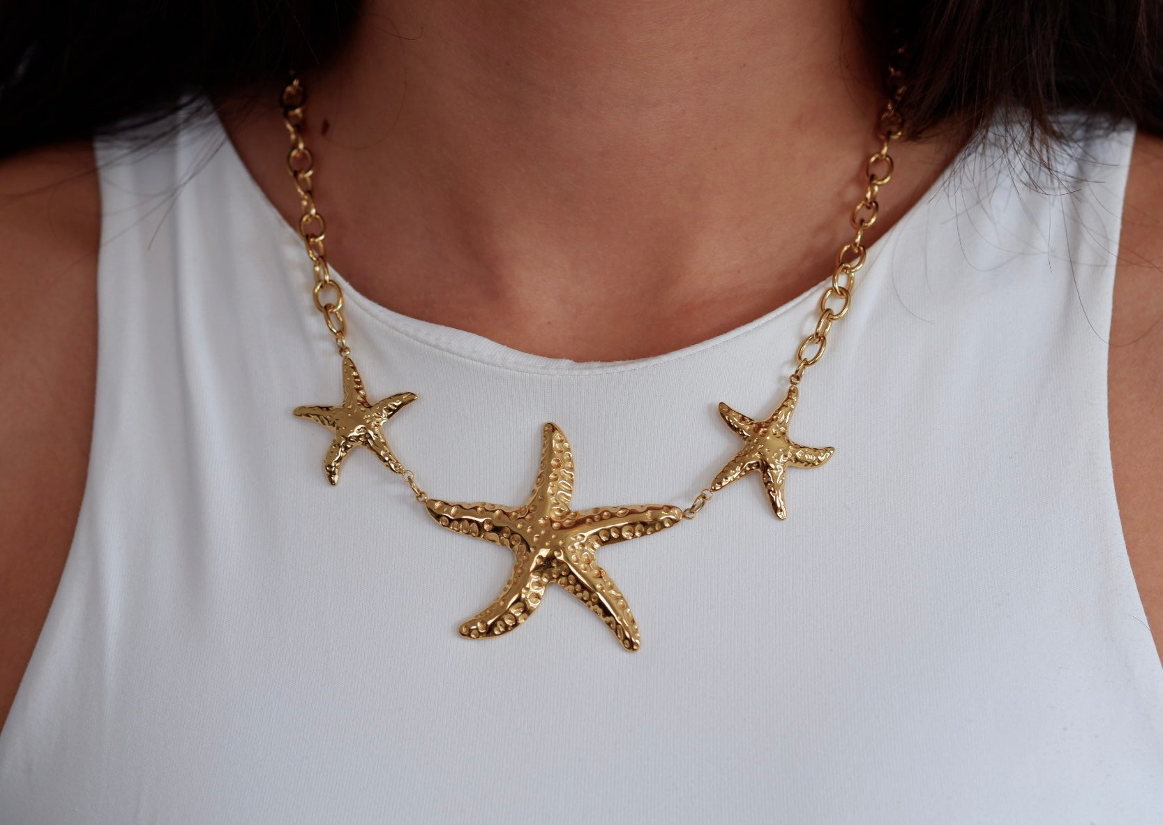 Sumérgete en el encanto del océano con este delicado collar de acero inoxidable, decorado con pequeñas estrellas de mar que evocan la frescura del verano y la libertad del mar.