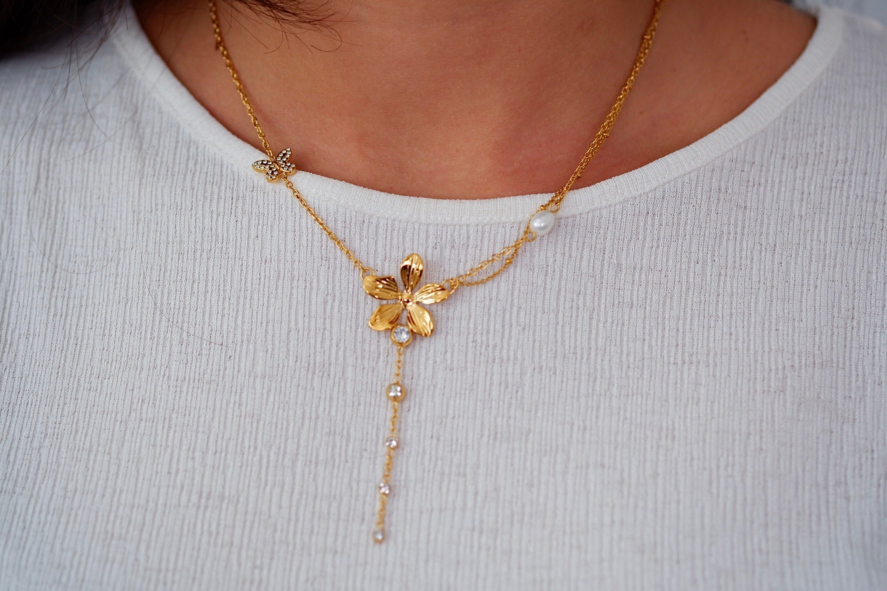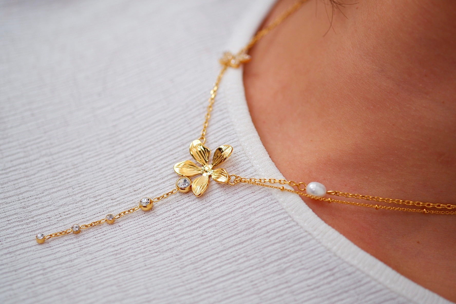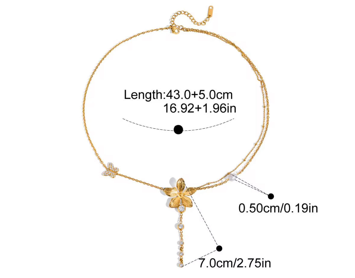 Collar fino y delicado con un charm en forma de flor adornado con brillantes zirconias. Ideal para darle un toque femenino y elegante a cualquier look, perfecto para uso diario o ocasiones especiales.