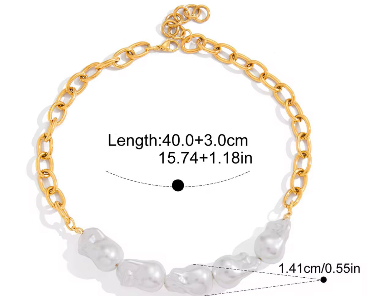 Un accesorio imponente y sofisticado que transforma cualquier outfit. Este collar combina un diseño grueso y moderno con la elegancia atemporal de las perlas, creando una pieza llamativa, femenina y perfecta para destacar. Ajusta hermoso al cuello, aporta presencia y realza tu estilo con un toque de lujo.