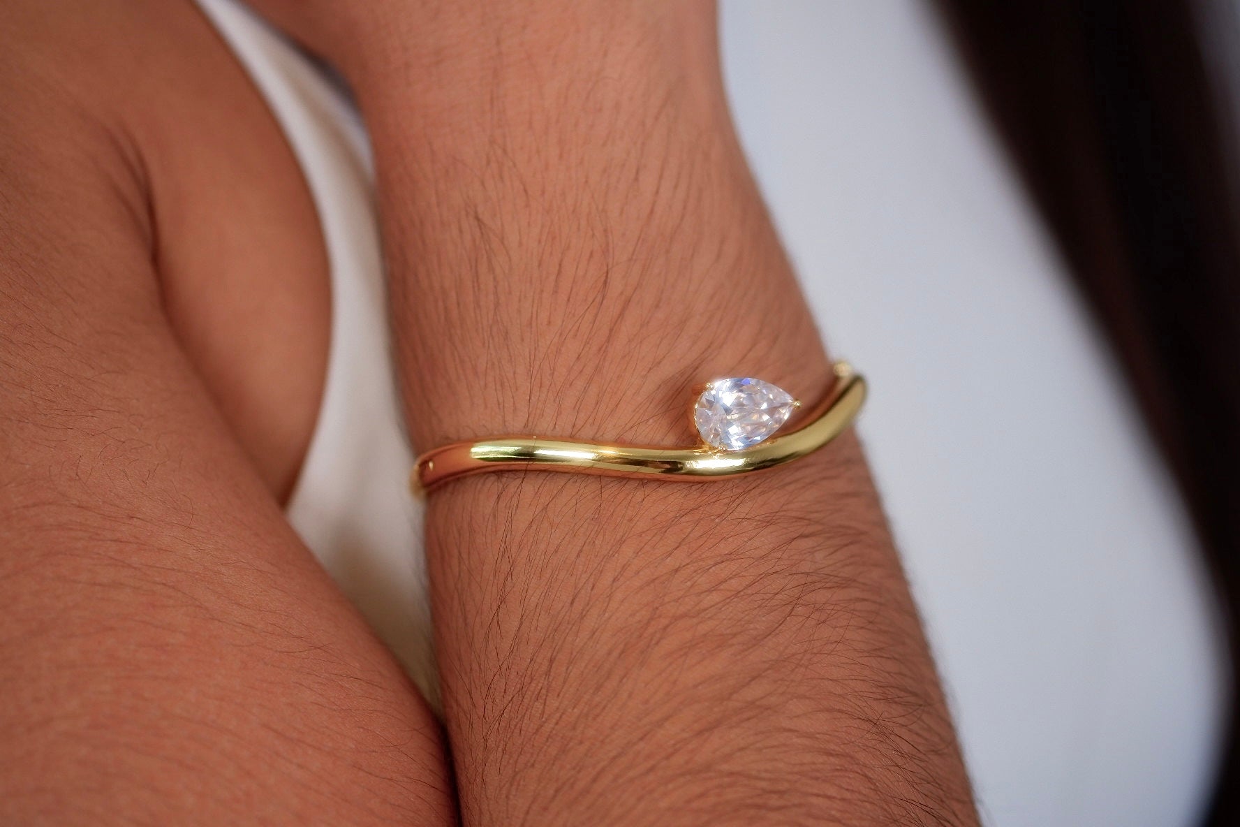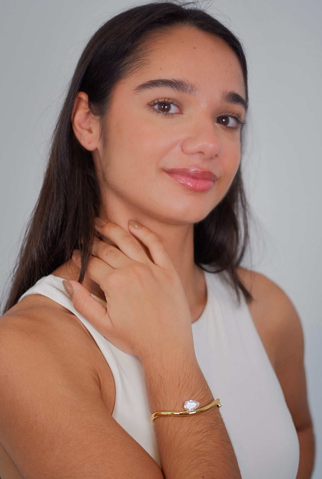 Bangle delicado con una zirconia central que aporta un toque de brillo sutil y sofisticado. Un diseño moderno y minimalista ideal para usarlo de día o noche.