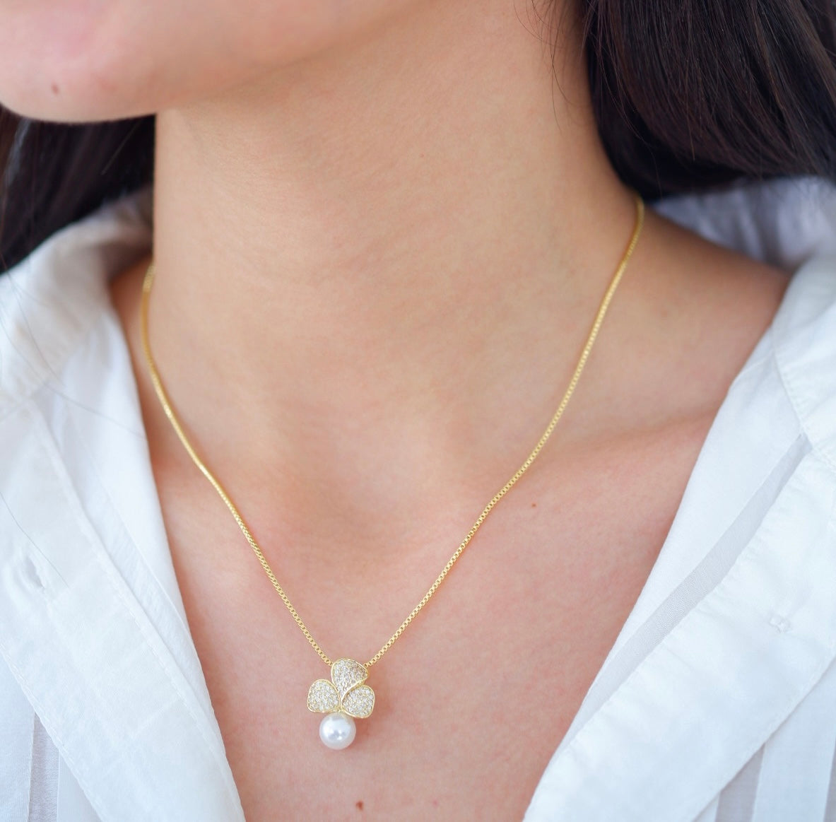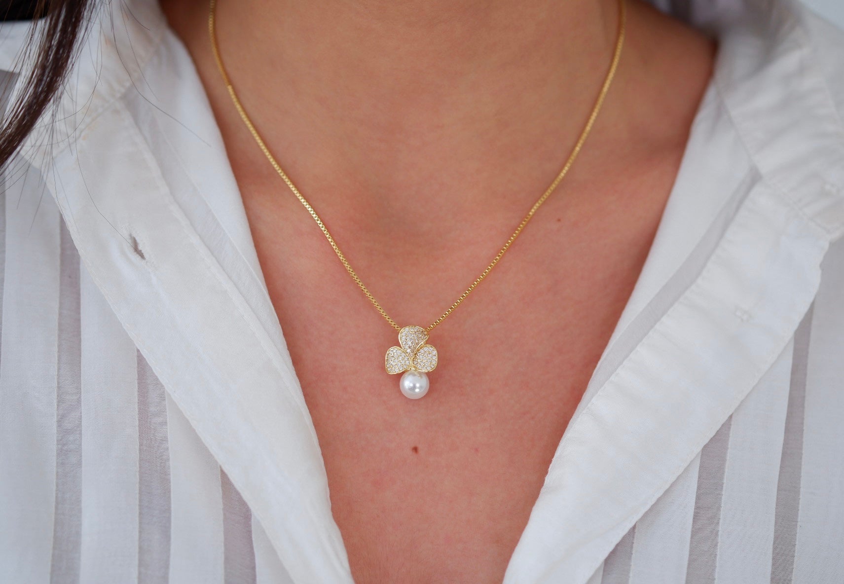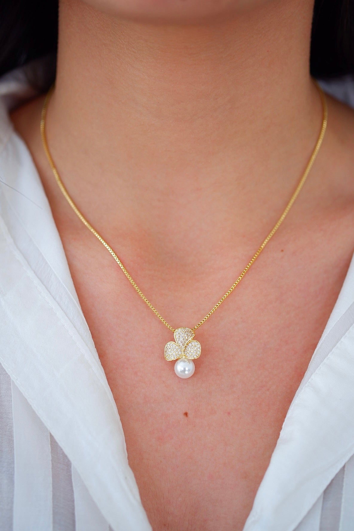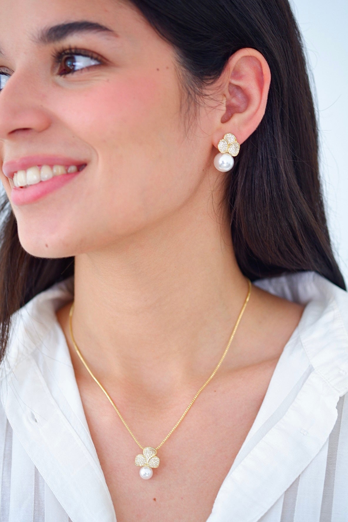 Set de collar y aretes con perla, realzados por delicadas hojitas superiores en micro zirconias que aportan un brillo sutil y sofisticado. Su diseño combina la elegancia clásica de la perla con un toque moderno y femenino, ideal para ocasiones especiales o para elevar cualquier look diario. Un set refinado, romántico y perfecto para regalar.